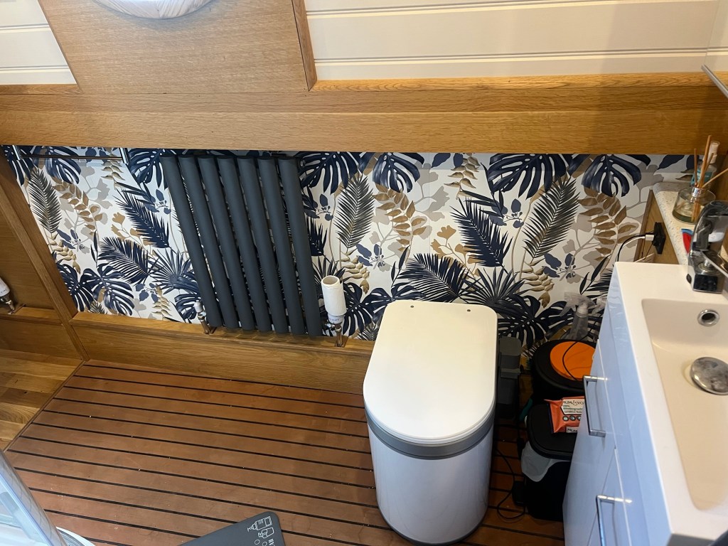 And Chris certainly hadn’t been taking it easy while I was away… he’d been cracking on with the “honey-do” list and surprised me by wallpapering the boat — and I absolutely love it! You’ll have to let me know what you think.