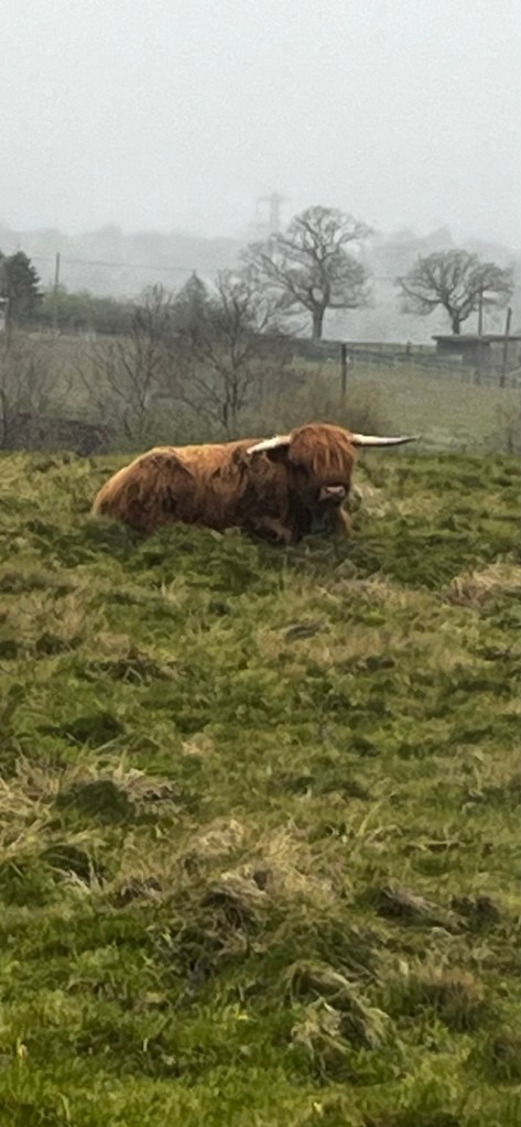 After about 24 hours of finding my feet again, we headed out for a walk to Lyme Park. It’s about a 45-minute walk across fields, passing spring lambs and even a few Highland cattle — a pretty perfect route.